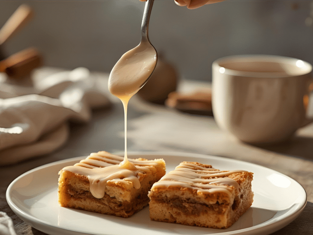 If your bars sink in the middle, they were likely underbaked, or the batter was overmixed, incorporating too much air. If the glaze is too runny, add more powdered sugar a tablespoon at a time; if it’s too stiff, add milk by the teaspoon. If the cinnamon swirl sinks to the bottom, your batter might have been too warm or thin; try chilling the batter for 10 minutes before swirling next time. Hard edges usually mean the oven temperature is too high or the pan was placed too close to the heating element; use an oven thermometer to verify accuracy.