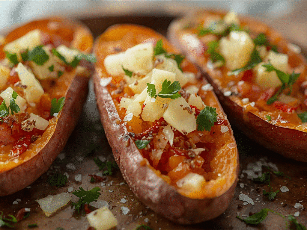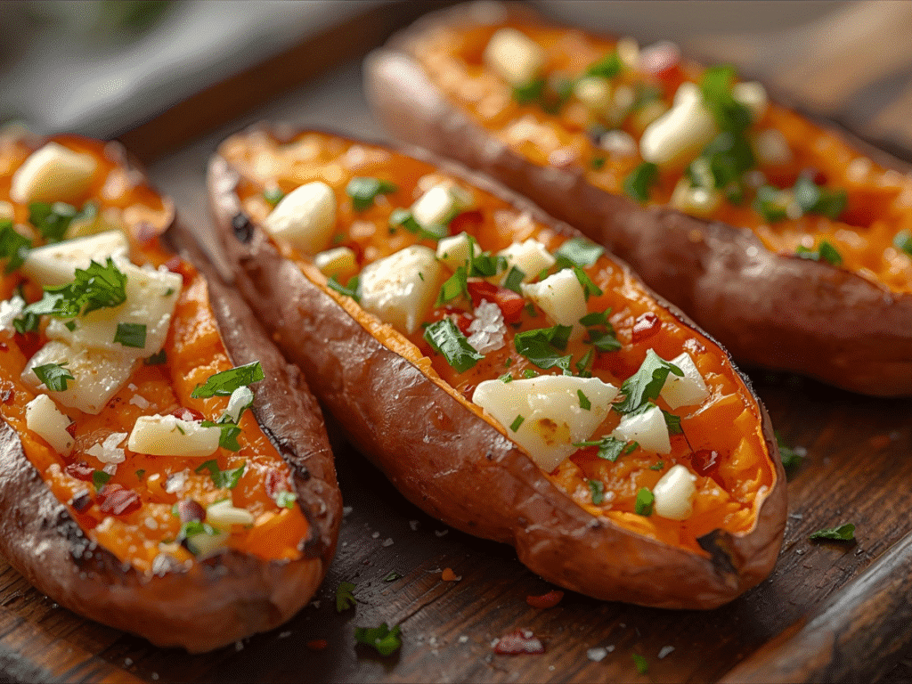Total Time: 40 minutes; Yield: 4 servings; Difficulty: Easy; Cost: Budget‑friendly; Diet: Vegetarian, gluten‑free friendly when using true Parmesan; Method: Oven‑roasted at high heat for crisp edges. These wedges answer the question “what goes good with sweet potatoes” with a garlicky, cheesy finish that complements burgers, chicken, or salad.​