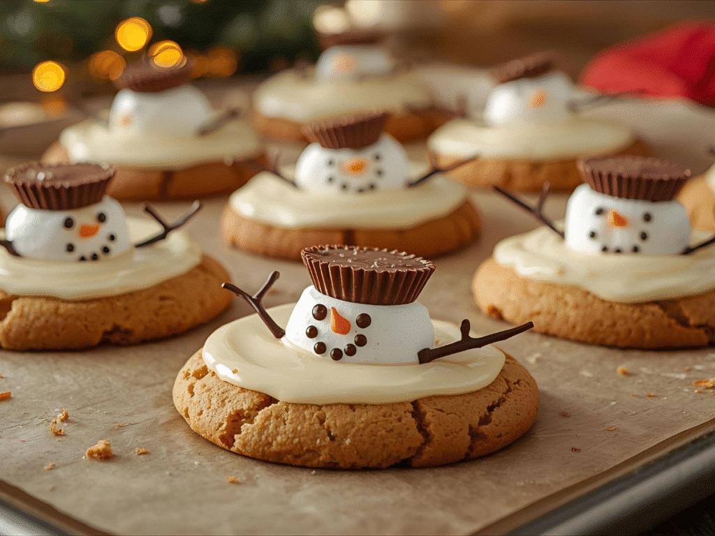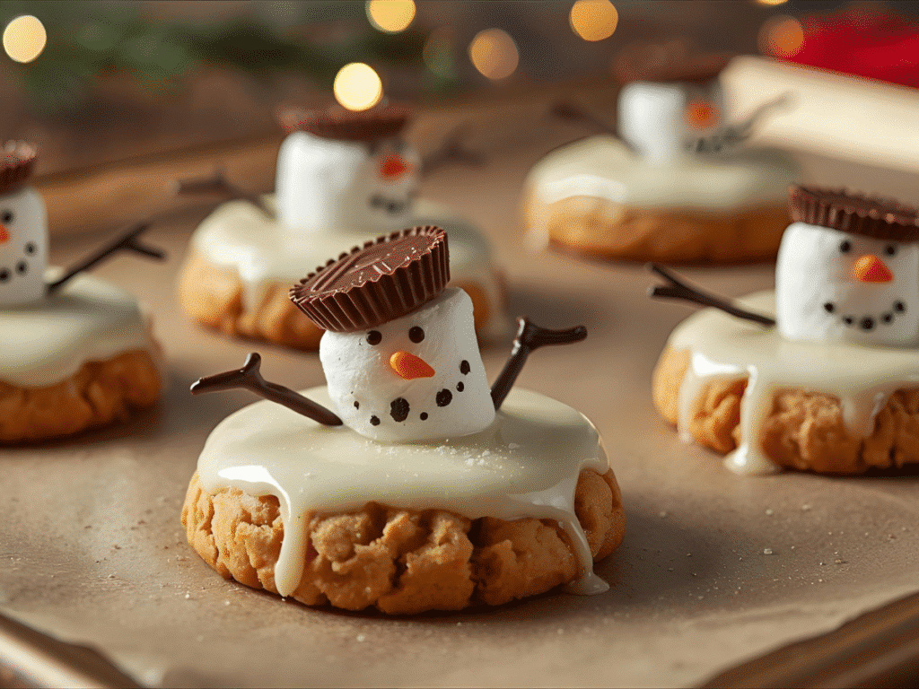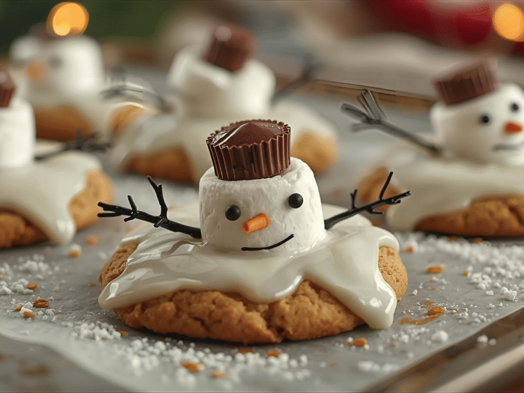 https://elitesrecipes.com/white-chocolate-macadamia-cookies-that-melt/At its heart, this confection is a soft, chewy peanut butter cookie that serves as a sturdy and flavorful foundation. Unlike standard Snowman Cookies that might rely on dry sugar dough, this version prioritizes moisture and depth of flavor. The “melted” effect is achieved with a pool of smooth white chocolate or almond bark, topped with a marshmallow head and a peanut butter cup hat. It creates a delightful contrast of textures—soft cookie, snappy chocolate, and fluffy marshmallow—resulting in a multi-sensory experience that defines the modern Winter Cookie.