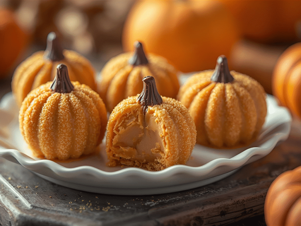Bouchées crémeuses et sans cuisson réunissant le cheesecake et les épices de citrouille — idéales pour l’automne et les fêtes.