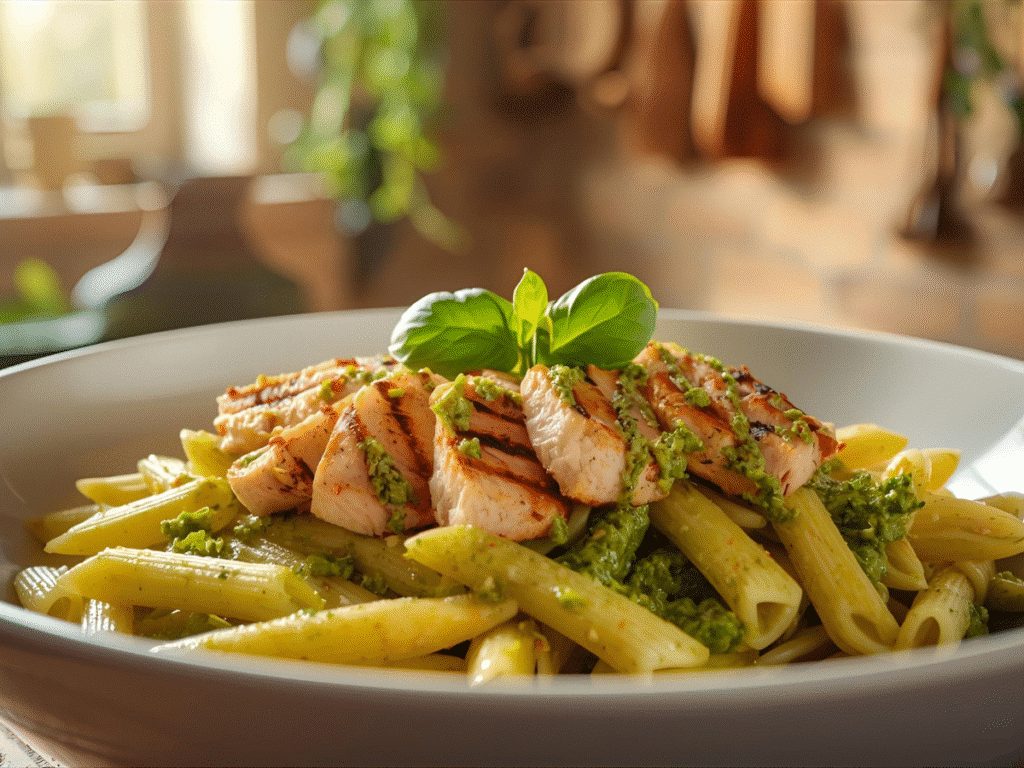 A vibrant and comforting creamy pesto chicken pasta dish packed with fresh basil flavor, tender chicken, and juicy cherry tomatoes. Ready in just 25 minutes.