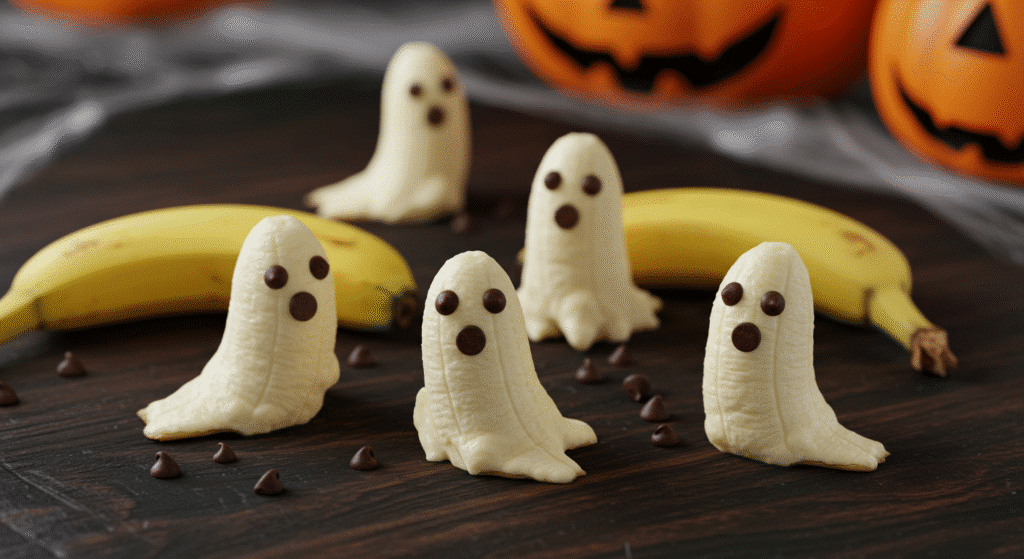 Turn simple bananas into spooky ghosts! Just slice, add mini chocolate chips for eyes, and a regular chip for the mouth.
