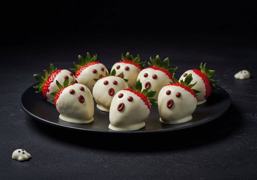 Dip fresh strawberries in melted white chocolate, then draw little ghost faces with black icing.
