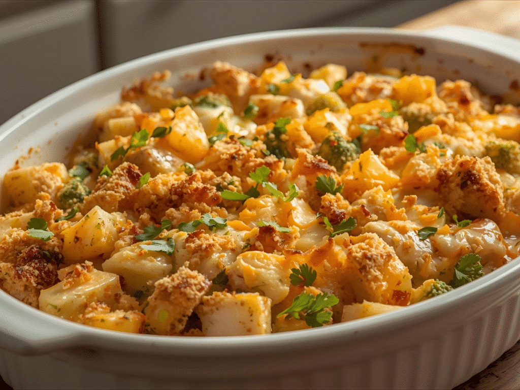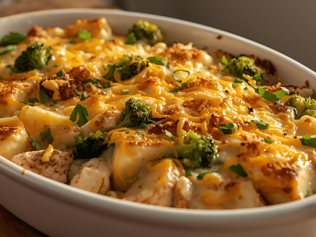 Creamy, cheesy, and hearty — this baked casserole brings together all your favorite comfort flavors in one delicious dish! Loaded with tender chicken, potatoes, and broccoli.